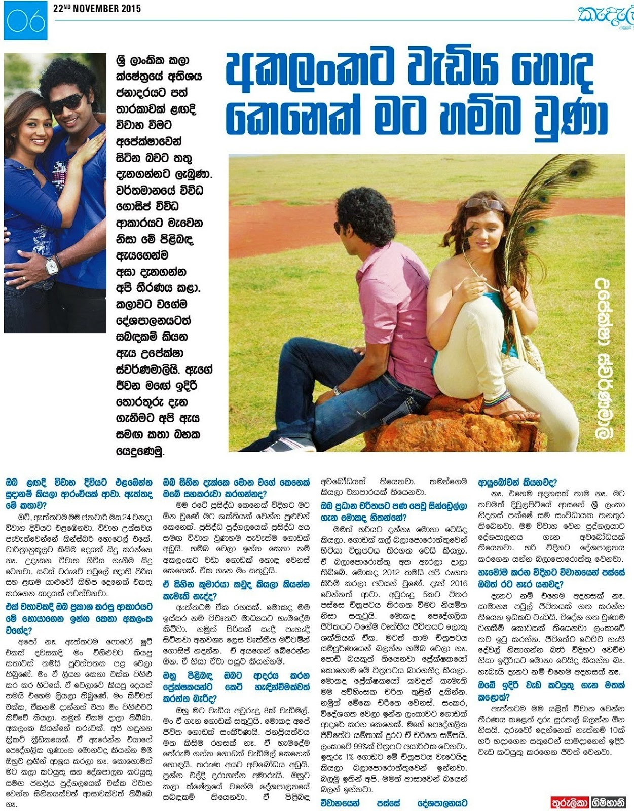 Upeksha Swarnamali, MP is a Sri Lankan politician, model and television actress. A current member of the Sri Lankan parliament, she gain popularity for her role on the television series PABA broadcast on ITN. Upeksha will be seen in more powerful role in the movie 'Bombs and Roses
